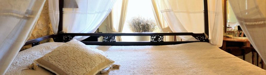 This spacious, yet charming room, is full of light and has lots of attention to detail. The large (1.80 x 2.00 m) four-poster bed is decorated with soft linens. A sitting area in front of a fireplace is ready for drinking local wine or having a snack. The staircase in the room connects to the […]